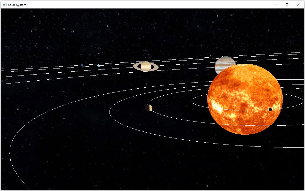 然后我尝试用太阳扩大轨道,但这一次行星变得很小,无法看到。所以,我缩放了与其他距离不同的太阳大小。